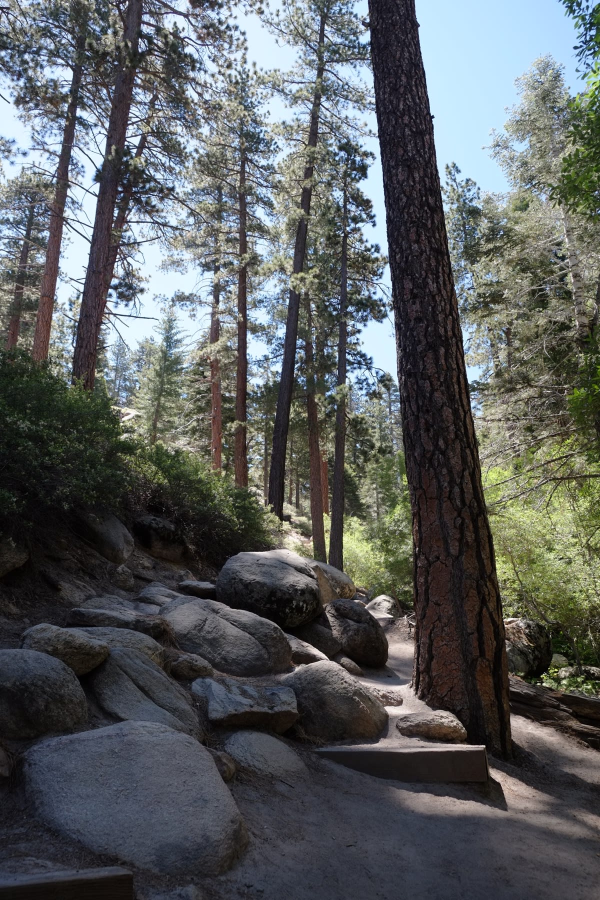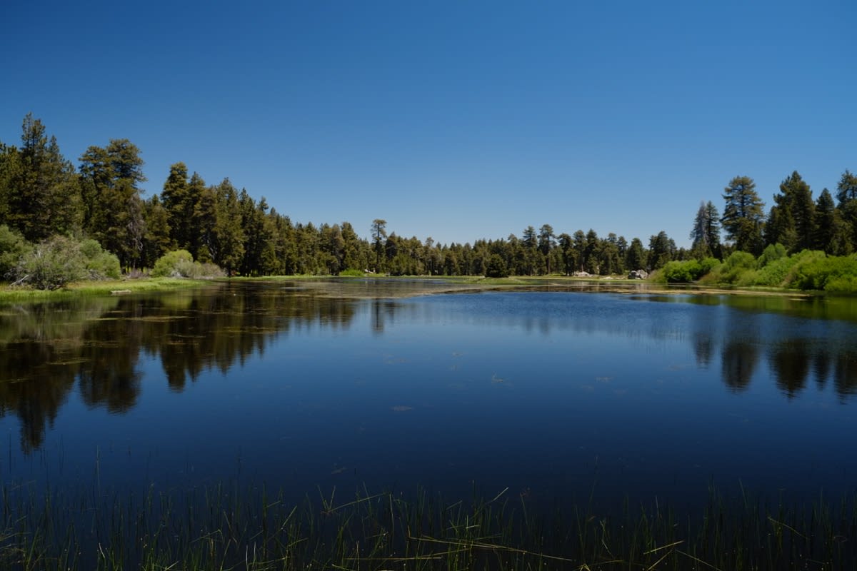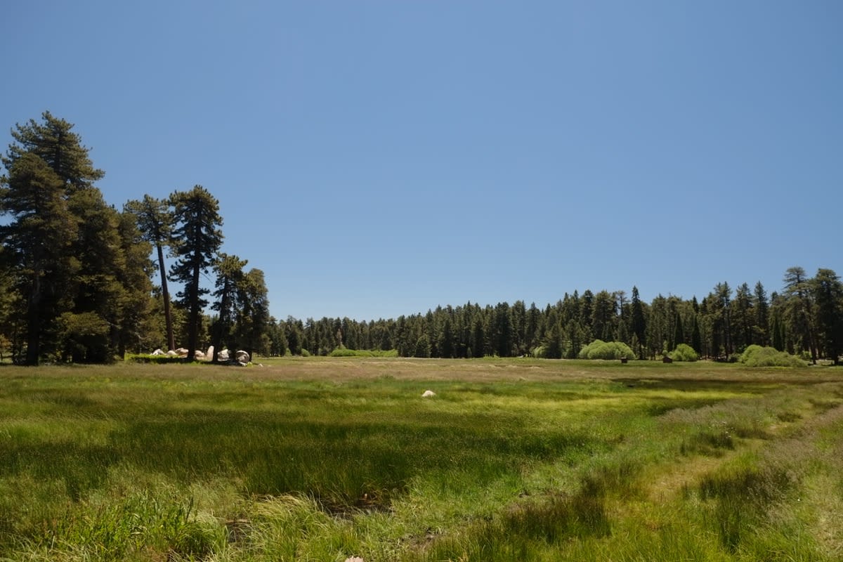 This trail starts at the Castle Rock Trailhead west of the Boulder Bay area of Big Bear Lake. Parking may be tricky, as you will have to find a safe spot on the side of the main road. The trail quickly goes very steep up a mile or more to the first landmark of Castle Rock. This in of it’s self would be a nice hike, as it has a great view of nearby Big Bear Lake. A little further past that point, the trail will level off and take you to a fire road. Your first sight of Bluff Lake and the meadow will be near an old cabin and an entry way to land owned by the Wildlands Conservancy. A walk around the lake and meadow takes you around a lush field of bright green ferns, which feels like such a special sight in the aridness of Southern California.