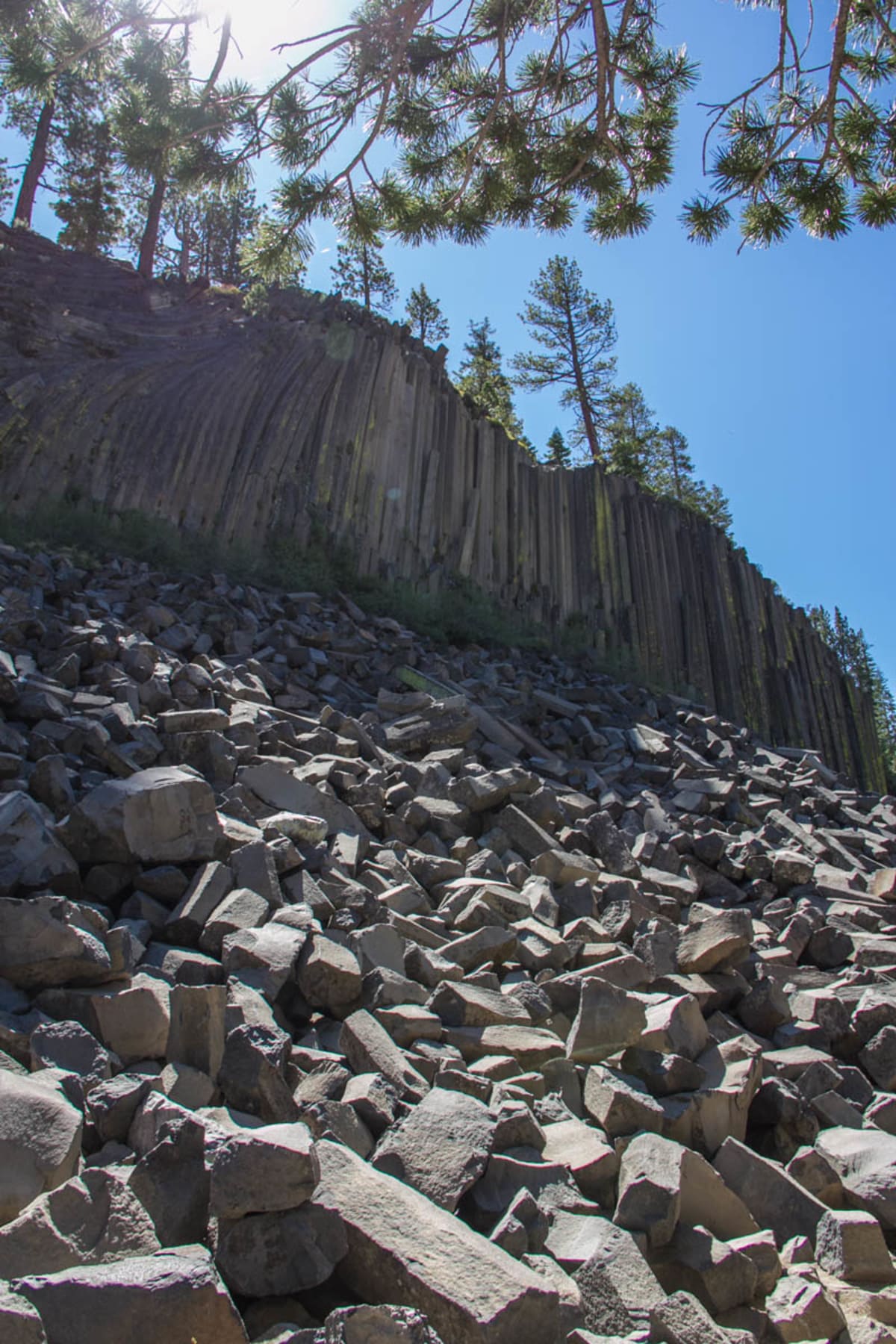 Hidden away outside the bustle of the Mammoth ski resort lies Devil’s Postpone National Monument. This relatively moderate hike through the forested woodland of Red’s Meadow Valley leads to a massive geological formation called Devil’s Postpile. This was once a lava flow that cooled down into many tall, hexagonal tubes of basalt rock. A short hike to the top of the formation will give you a closeup view of this cooled lava flow.