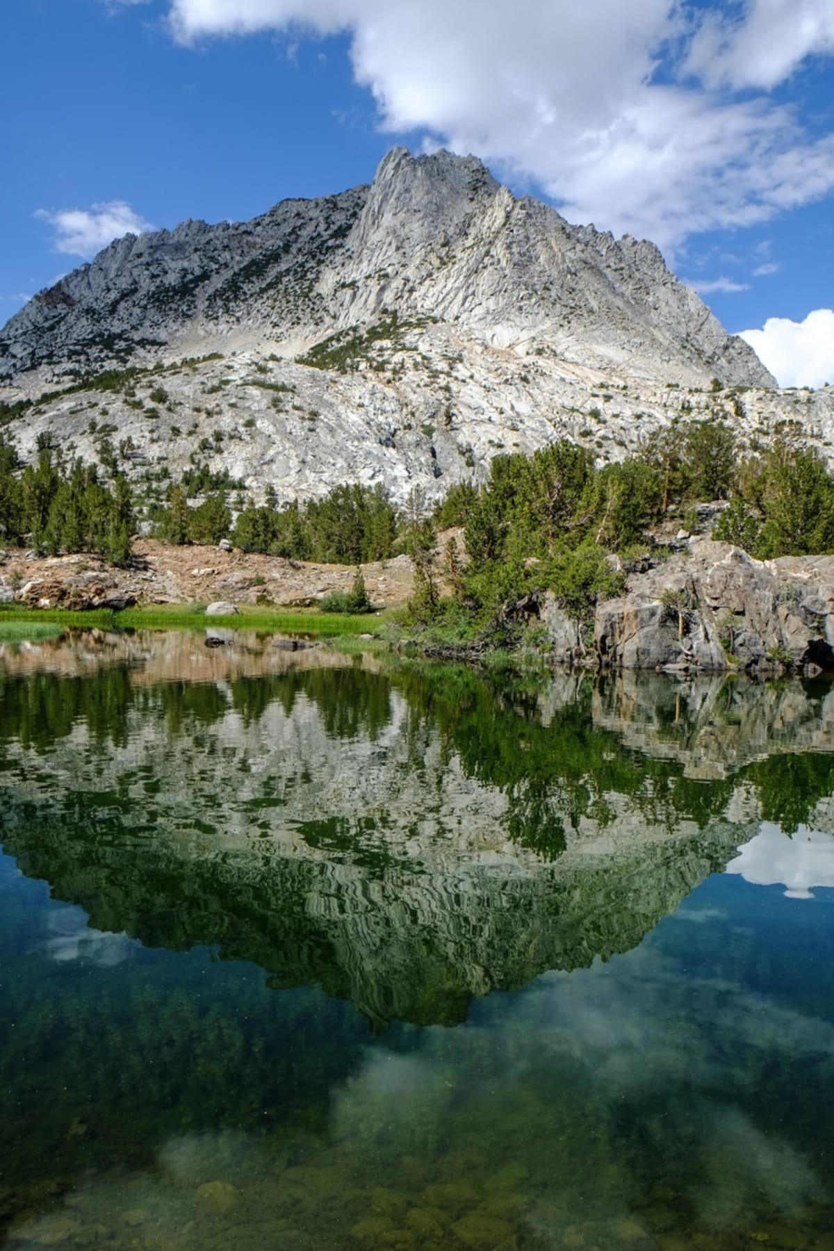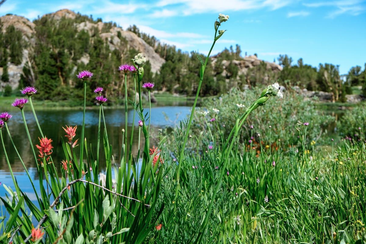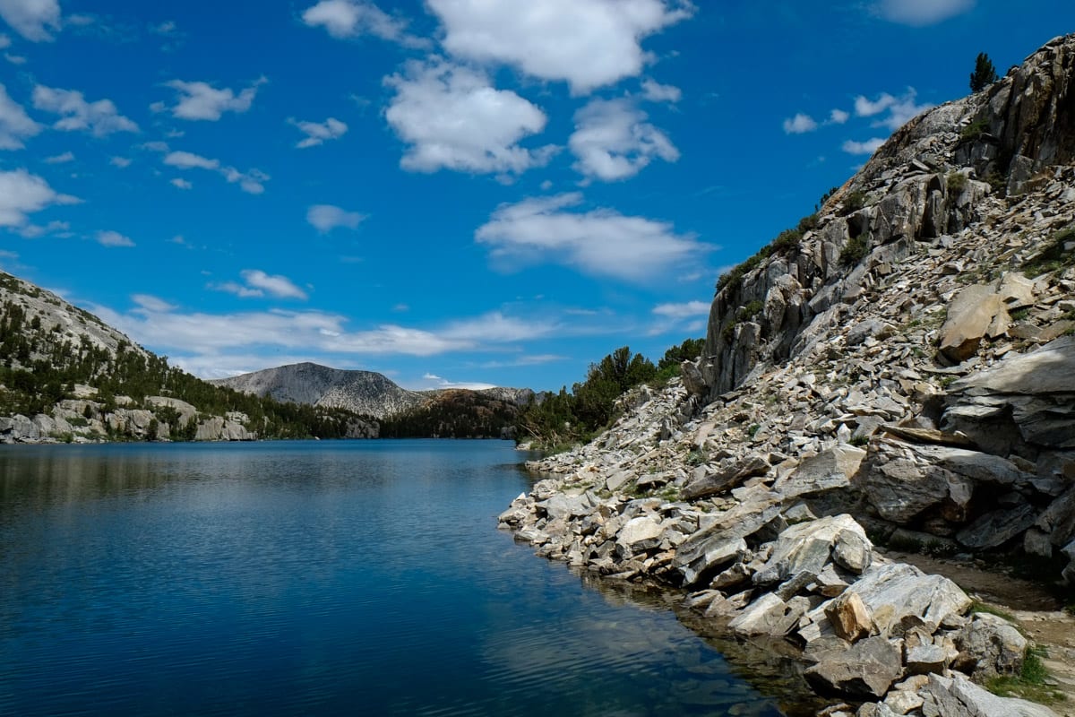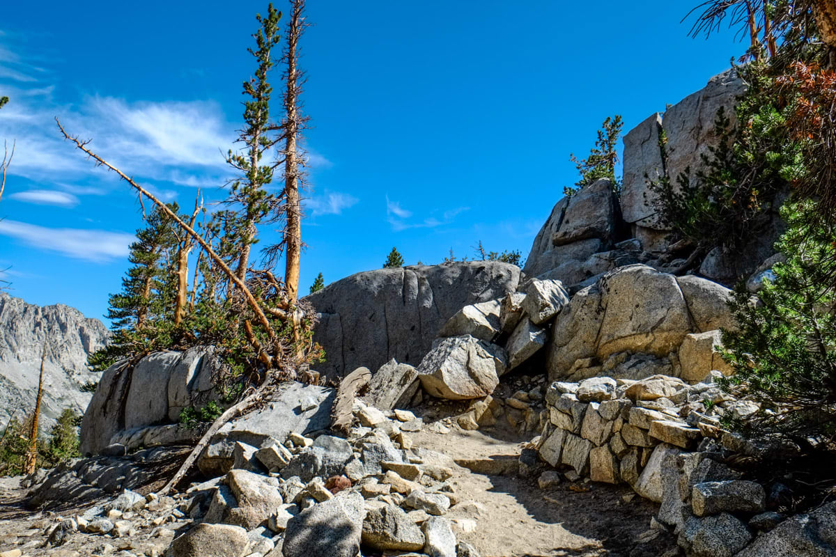 After a series of switchbacks and more climbing, the trail offers a junction to many other alpine lakes in the area. When the trail levels off, you are treated to your first view of South Lake and it’s lush assortment of flora surrounding the waters. The trail stays flat around the edge of the lake and eventually rises up all the way to the top of Bishop Pass, where it connects with the Pacific Crest Trail.