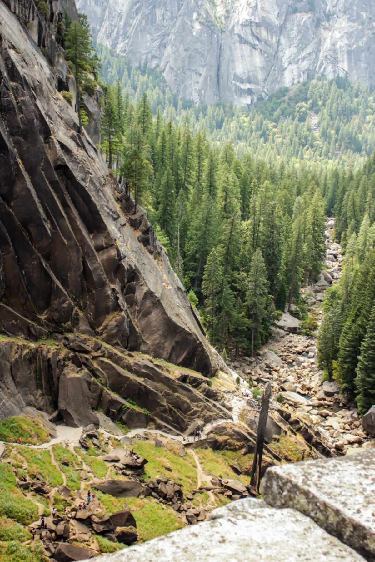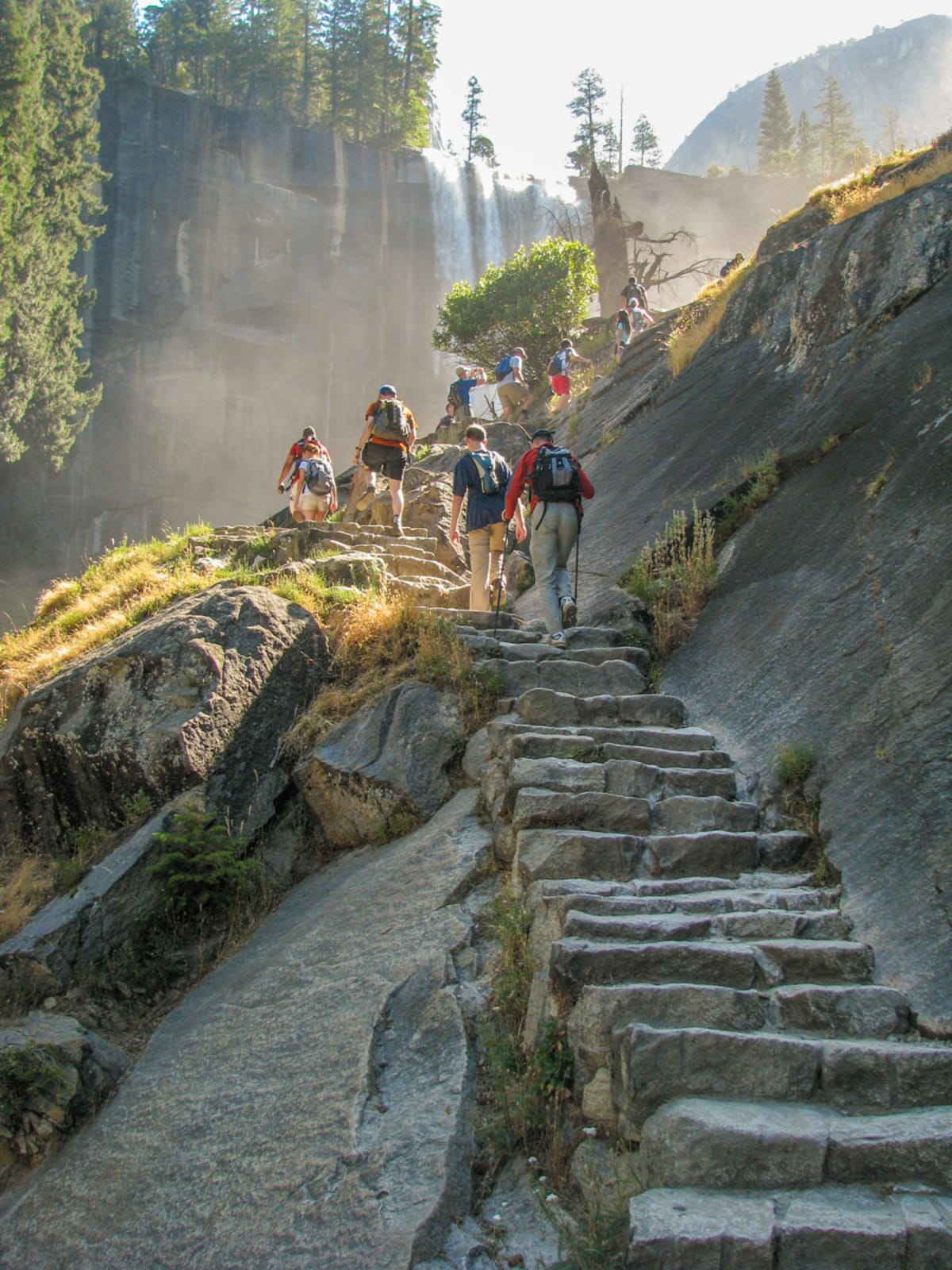 After about 1.2 miles, you arrive to the top of Vernal Falls. It is 2.7 miles all the way to the top of Nevada Falls. The Mist Trail is also the main route many hikers will take to the top of Half Dome and also shares the starting point of the legendary John Muir Trail.