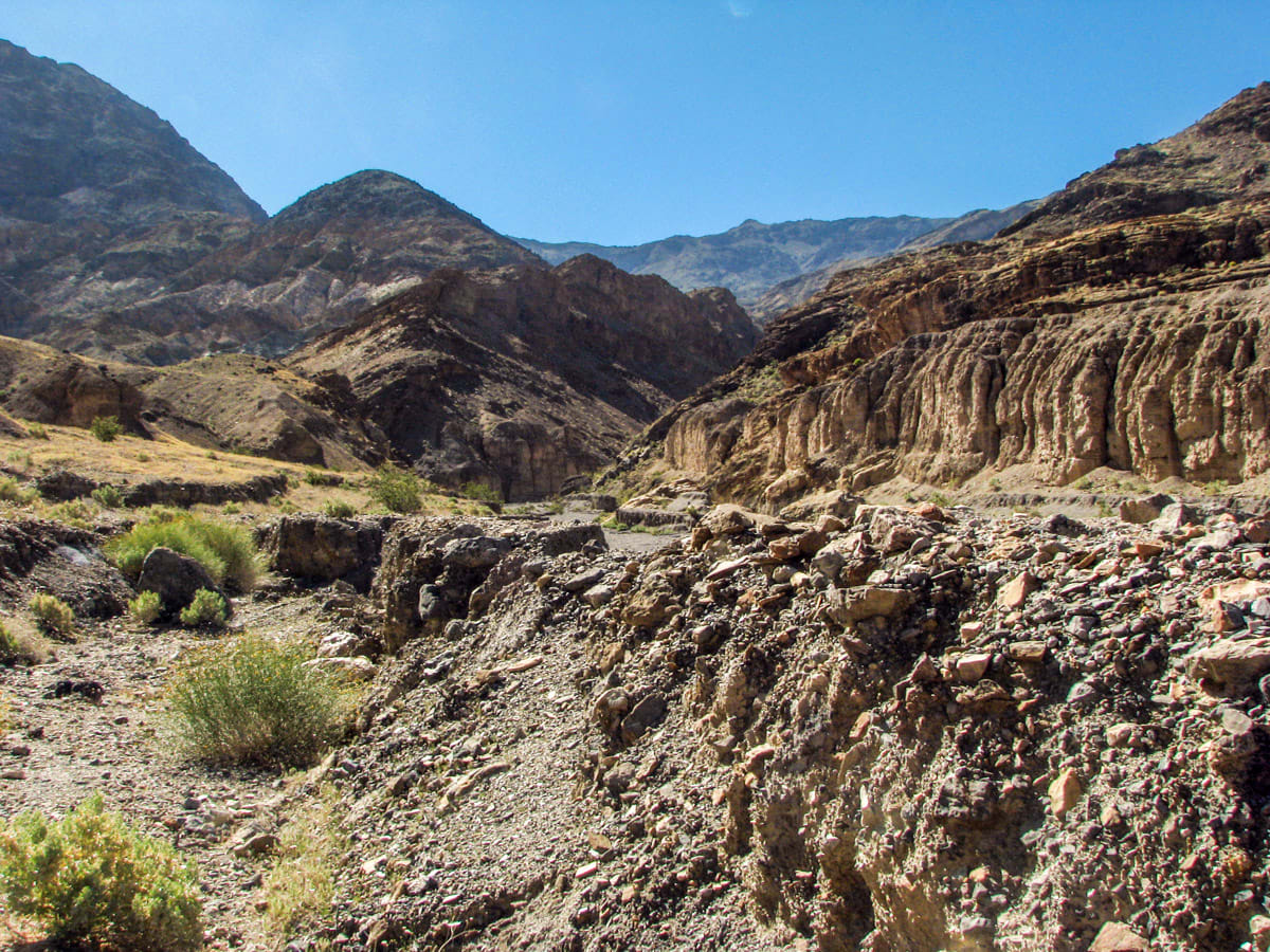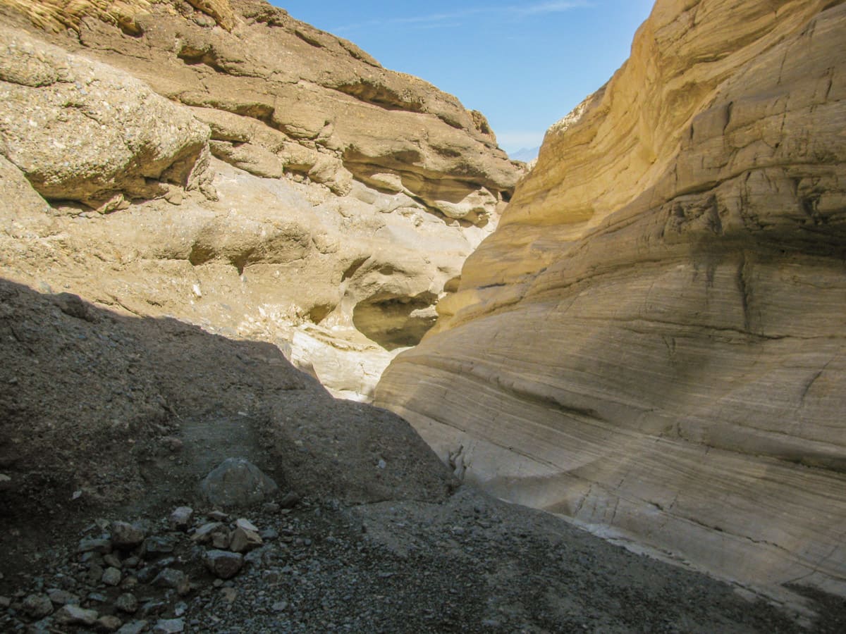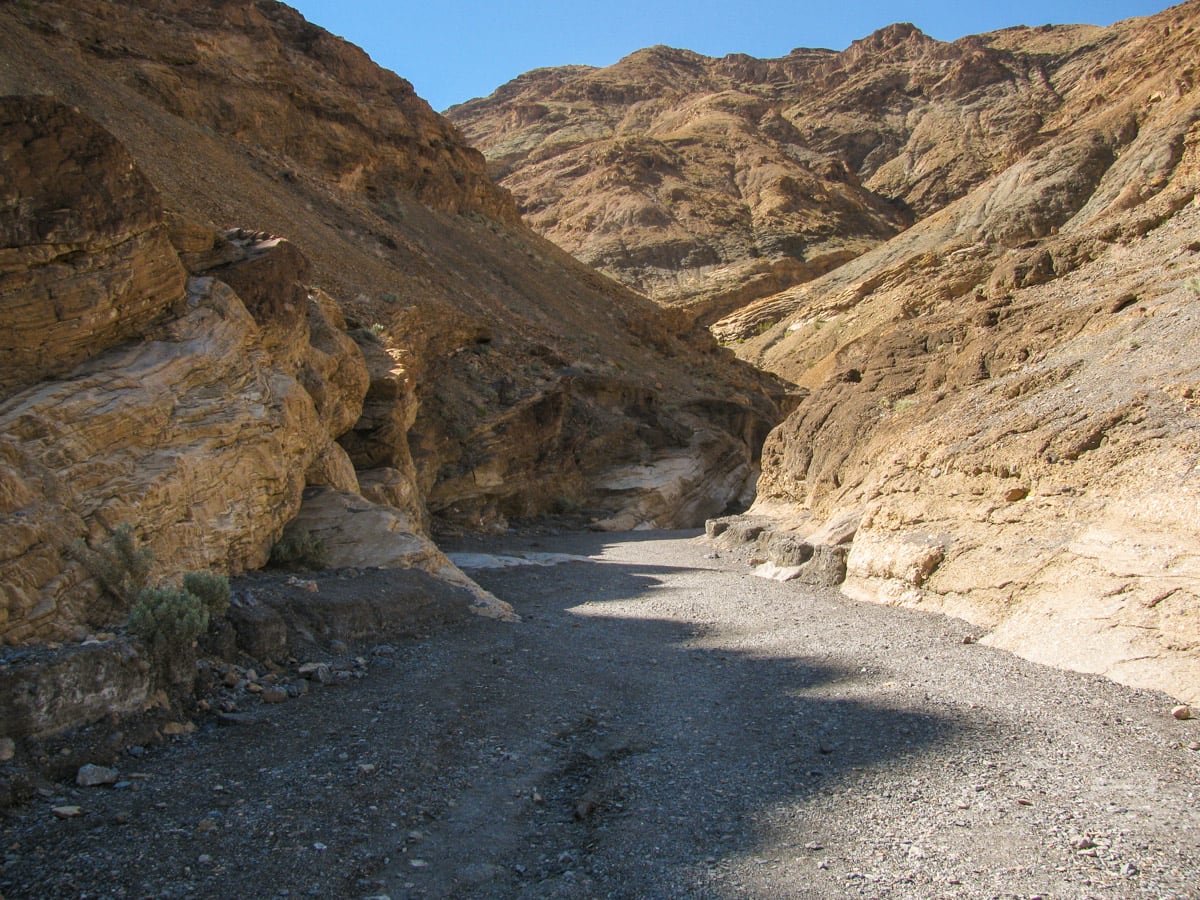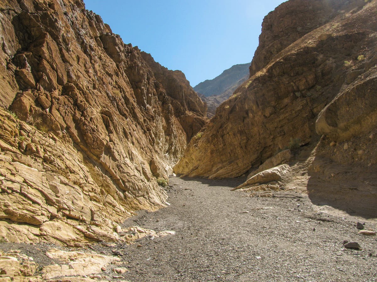 Mosaic Canyon is a small slot canyon that is tucked away in the mountains in the Stovepipe Wells area of Death Valley. From Stovepipe Wells, take the 2.5 mile dirt road to the trailhead. From here, you immediately hike in the narrow canyon and get up close to a variety of rocks polished away by many repeated flooding events. After this, the trail opens up to a much wider canyon and deeper into the foothills.
