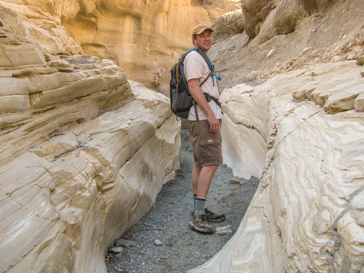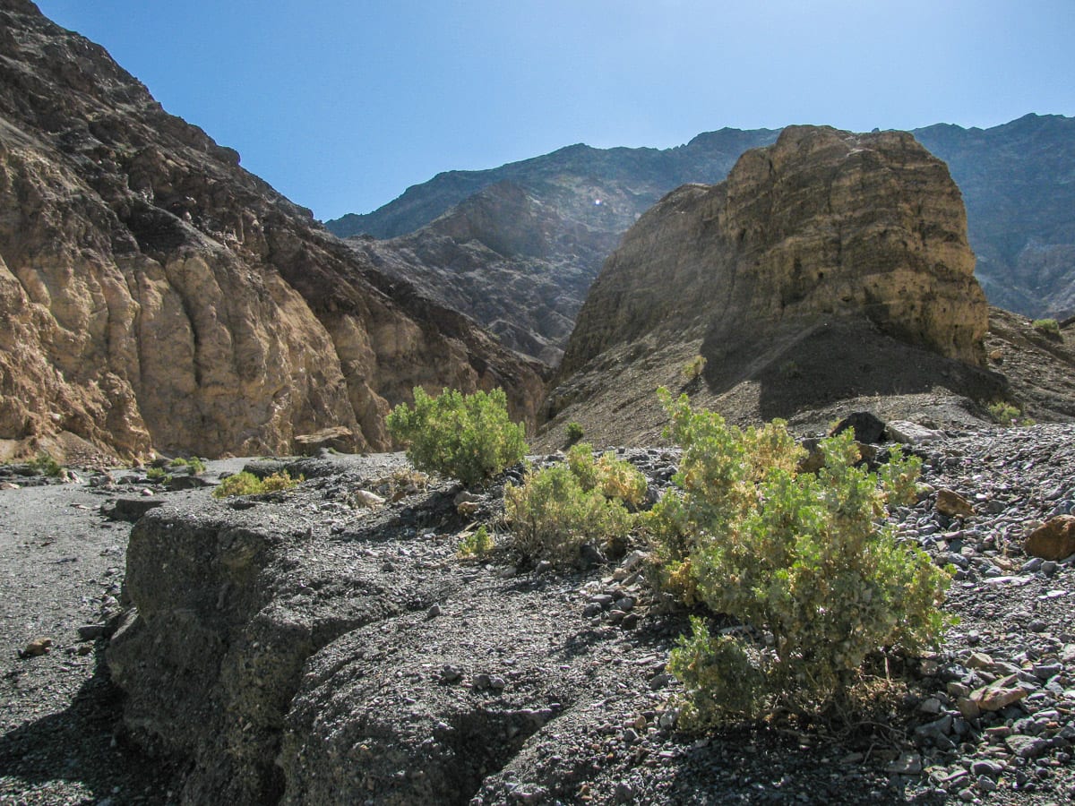 Mosaic Canyon is a small slot canyon that is tucked away in the mountains in the Stovepipe Wells area of Death Valley. From Stovepipe Wells, take the 2.5 mile dirt road to the trailhead. From here, you immediately hike in the narrow canyon and get up close to a variety of rocks polished away by many repeated flooding events. After this, the trail opens up to a much wider canyon and deeper into the foothills.