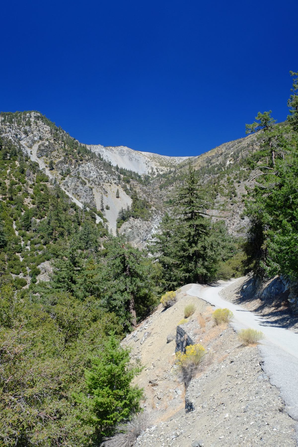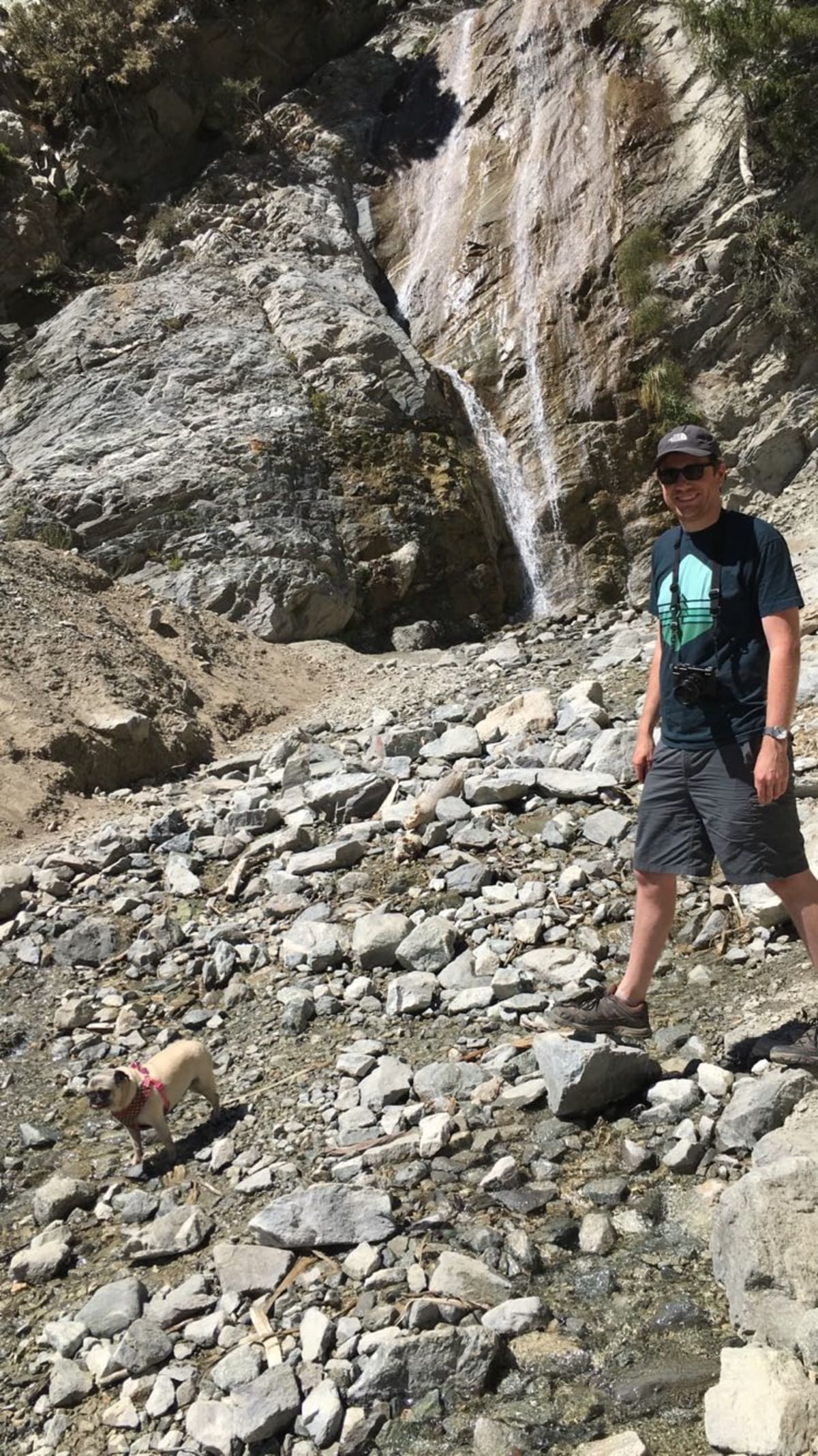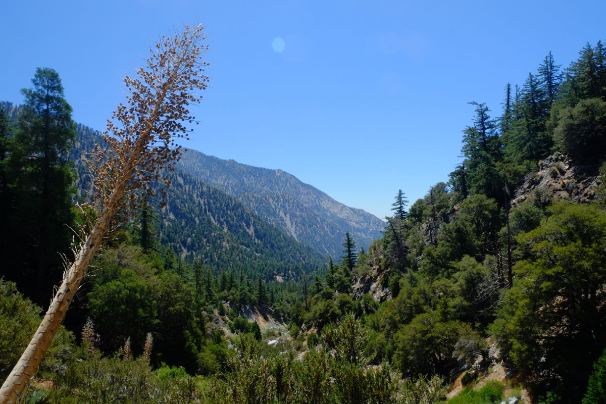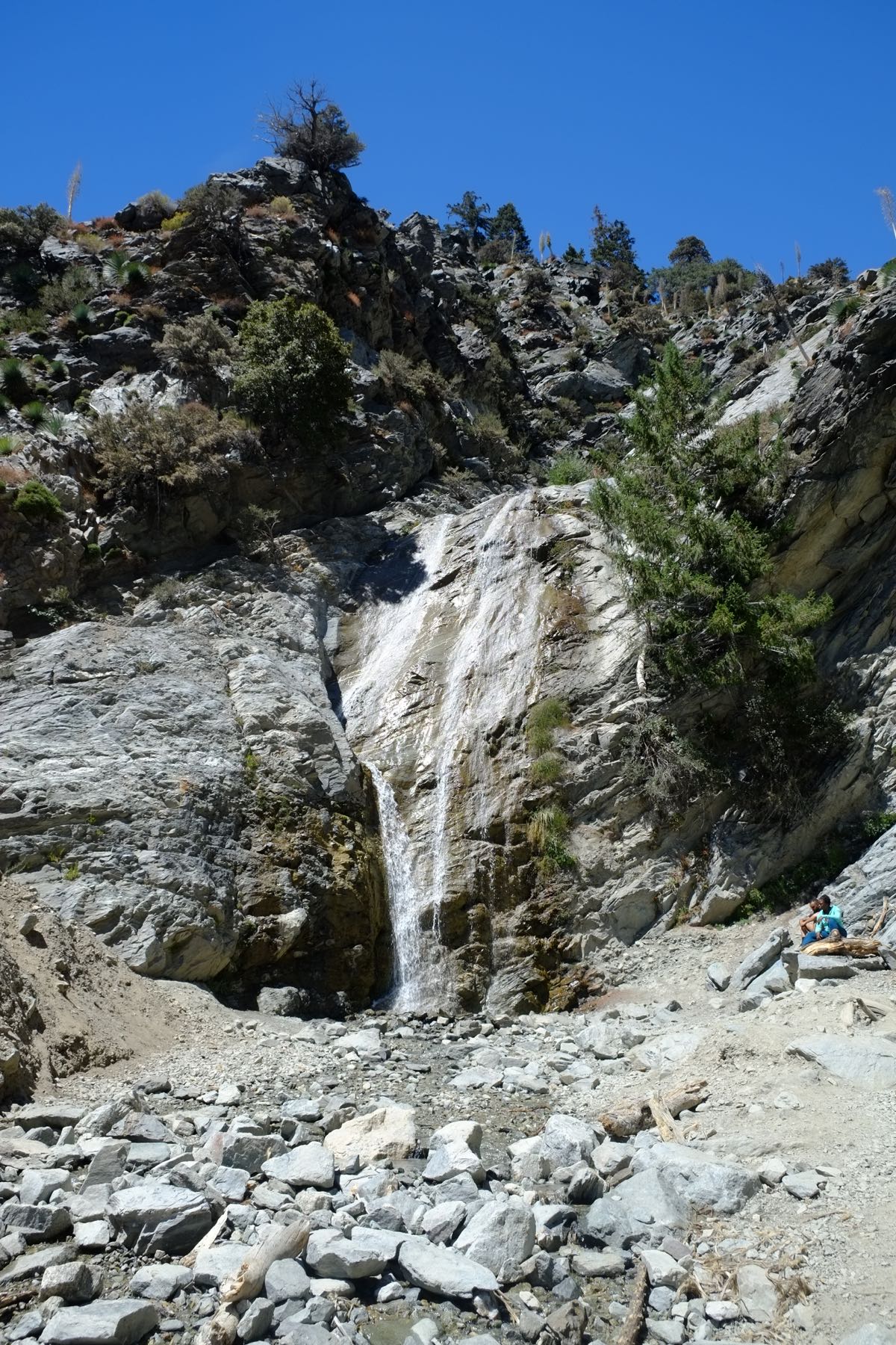 The hike to the waterfalls is an out-and-back hike that comes in under a mile and a half. While the distance is short, be ready for the long uphill section right from the start. Don’t get too discouraged though, as the path gives you sweeping views of the valley and further south into the Inland Empire. Once at the waterfall viewing area, keep left and down hill towards the waterfall.